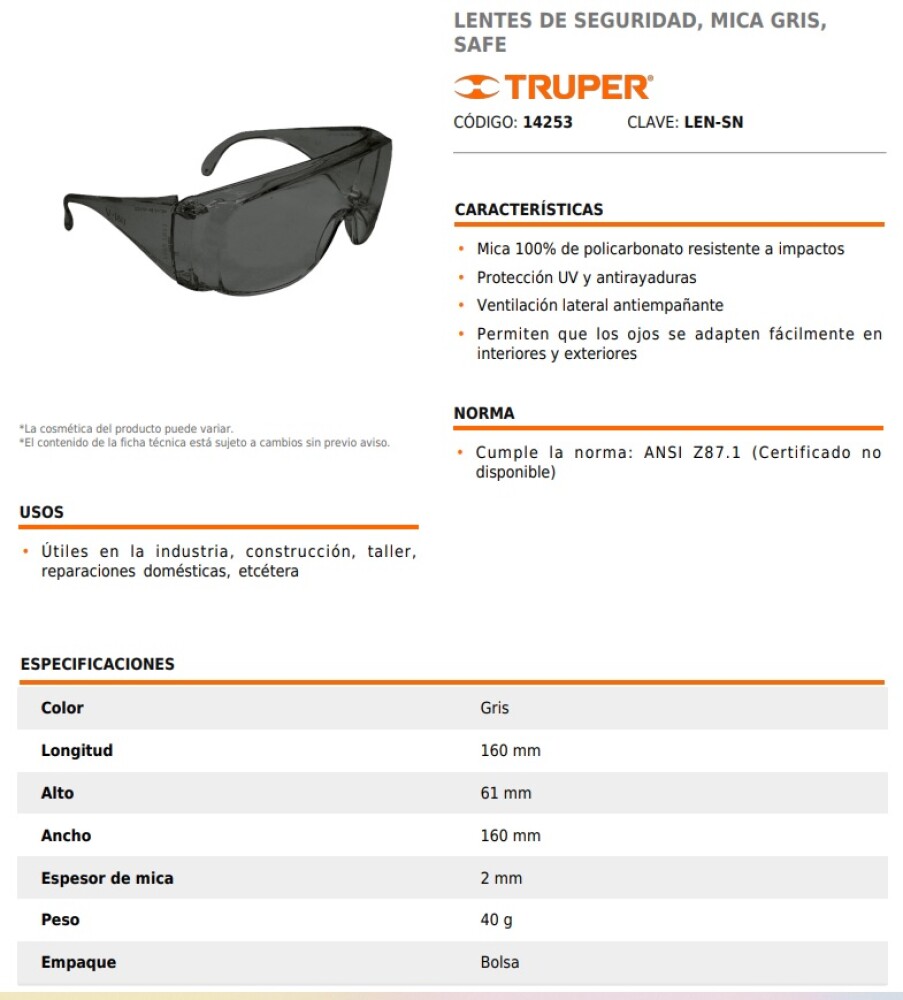 GAFA TRUPER LENTES PANORAMICOS GRIS LEDE-SN