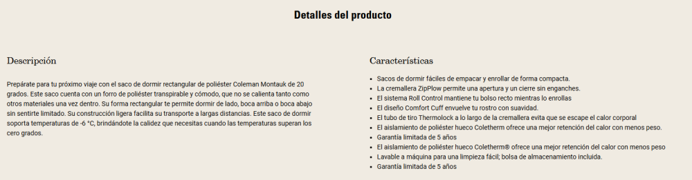 SOBRE COLEMAN MONTAUK -6° BAJO CERO 214 X 92